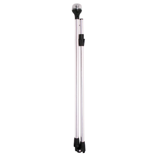 Like other lights in Attwood’s 5500 series, the anti-glare design focuses light at the horizon and above—not in the helm person’s eyes. It draws just 1.8 watts at 12V DC and it is rated for 50,000+ hours of use. Two-mile, 360° visibility for boats up to 39.4 feet (12m). The patented Articulating Head adjusts from 15° forward to 15° aft. Just align to the horizon and tighten the adjustment screw. Locking collar poles offer “Universal Fit” for a wide variety of Attwood 2-pin straight or angled bases.