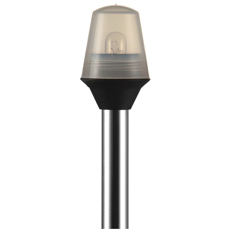 The frosted globe lens has a clean look for optimal visibility on boats up to 65’6” (20m) in length. In the daytime or when not in use, simply stow-away these lights to keep them out of your way. A swivel cover on the base protects the base socket when the light is stowed away. The base extends just 3″ below deck.