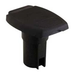 Tough resilient 2-pin base for angled pole lights with locking collars. For installation in close quarters like narrow gunwales or deck areas. Narrow base has soft rubber cover with gasket to seal socket. Contacts are nickel-plated to resist corrosion. Multi-crimped for durability. Wire leads are tinned for corrosion-resistance. Black.