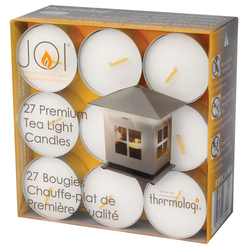 Customized for maximum performance in Caframo’s JOI Lamp, these tea light candles feature a high-quality wick that minimizes soot while creating optimum heat for consistent LED lighting throughout the burn time. Comes with 27 tea lights, which is more than 100 hours of full LED lighting when used with your JOI Lamp.