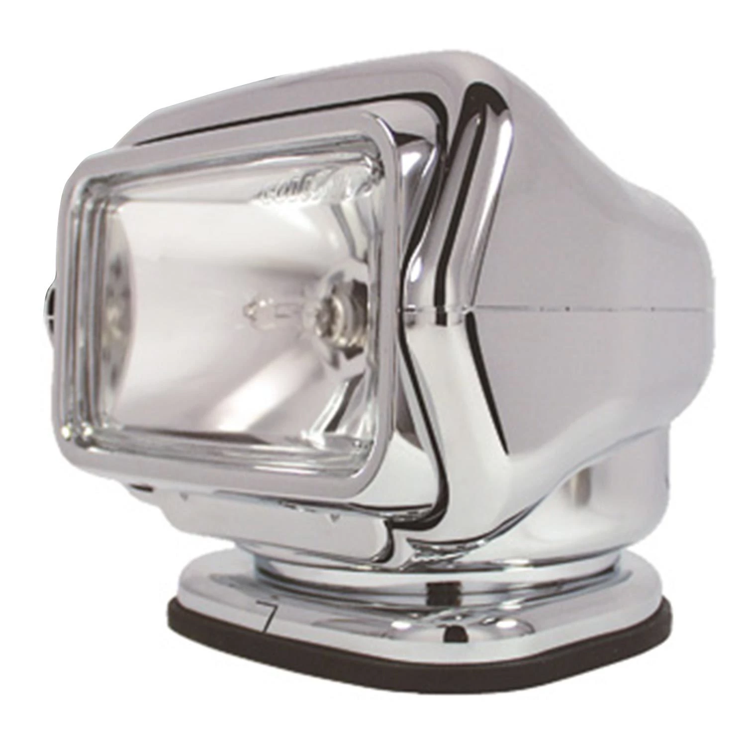 Features a 200,000-candela focused beam and a stylish, tough ASA chrome-plated case. Includes a wireless dash mount remote and a new mounting system that utilizes a stainless steel mounting plate which under-locks to the light for quick, simple installation. The controls feature two-speed operation, and will turn the light on/off, and rotate the light 370° horizontally and 135° vertically.