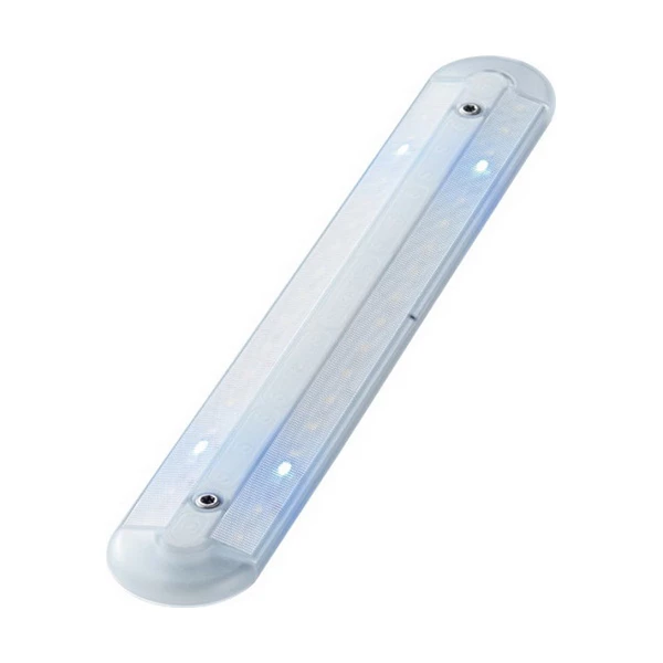 The F-22 HO is an extremely low profile touch activated linear LED fixture featuring dual color operation. Installation could not be more simple, as the F-22 is completely surface-mounted, only requiring two screws for fastening. Turning the fixture on & off and/or switching from cool white to blue LED is achieved via photo sensors which respond to finger touch.