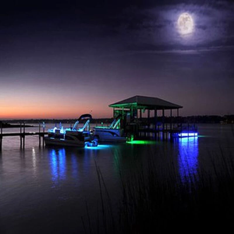 With blue/white dual color output, delivering more than 2,000 lumens and stunning color. Completely sealed with no external drivers. Self-isolating from metallic mounting surfaces to prevent galvanic corrosion. Perfect for typical transducer/accessory brackets.
