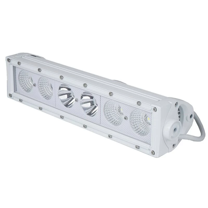 The Marine Sport Lighting LED Light Bars are a revolutionary way to add high power light output to any surface area with a straight or curved surface for docking, flood or spreader applications. These light bars are designed for fresh and salt water marine usage, but can also be used in automotive, UTV, and ATV applications where a white coated shell is desired. To make these bars even more attractive, Race Sport uses a white facing tile instead of the common chrome tiles to give this a TRUE “WHITE OUT” look!