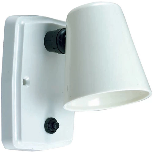 Molded white plastic bulkhead light will accommodate screw socket type bulbs to 40 watts.