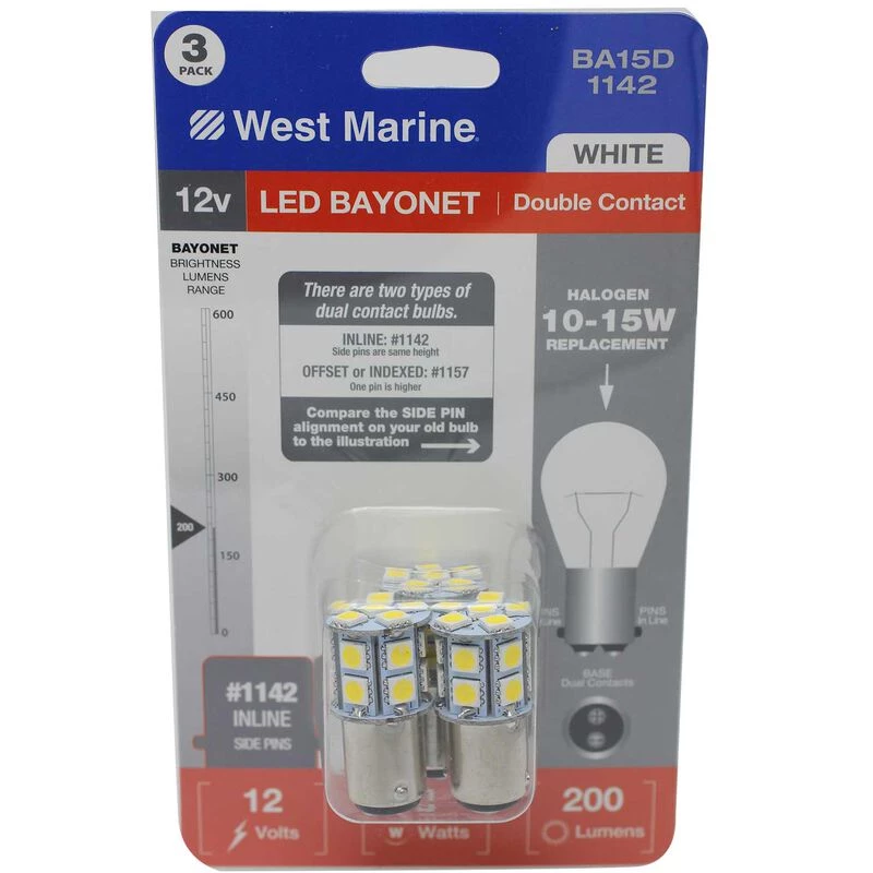 WEST MARINE Double Contact Bayonet BA15D-1142 LED Bulbs, 200 Lumens, 3-Pack