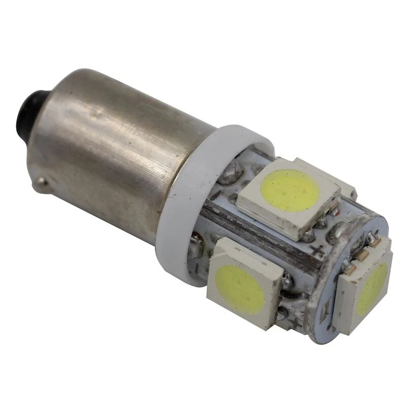 This bulb replaces and has similar brightness to 3 watt traditional Mini Bayonet bulbs using the small / short globe. Cross reference #’s BA9S, G3, T3, 1445. 51, 1896, 586,1889, 64115, 1895, 6253, 182, 1445, 756, 17053, 64113, 3893, 1893, 363, 216, 1816, 64111, 3886X, 1892, 1815, 53X, 57, 1891, 53, 293, 1895A, 57LL, 53LL, 1445LL, 1895LL, 1893LL, 3893LL, 1891LL, 1816LL. Single contact, 9mm base. 11-14VDC input range. 55 max lumens, radiates in all directions.