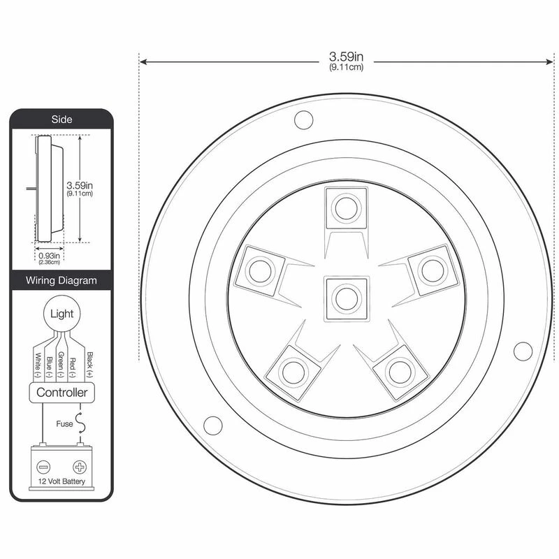 The WEST MARINE Round Six LED Underwater Light is built using a high impact polycarbonate round housing with 316 stainless steel bezel. Internal reflectors maximize light output and the included rubber gasket helps to create a seal on most any surface. RGBW techology allows the user to pick from a wide range of colors using the West Marine RGBW Controller (Not Included).